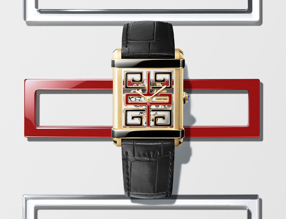 Privé系列2022年奠基于Tank Chinoise这款1920年代的作品重现世人面前,卡地亚为了庆祝这款表问世100周年,一方面推出较为原汁原味的复古作品,将手表的设计特色如表耳上方的横向设计忠实再现外(分别推出黄金、玫瑰金与铂金等版本),还有搭载现代高规格工艺的新款重新诠释这款经典杰作。卡地亚打造出镂空造型的9627 MC机芯,其支撑桥板的造型看起来相当亲切,因为它就像中式传统窗櫺会出现的木框般带有一丝禪意,且品牌还在支撑桥板上增添红色和黑色真漆加以妆点,强化了机芯特色结构的存在感,而高度的镂空设计也展现出与过往Tank Chinoise不同的新气象。
