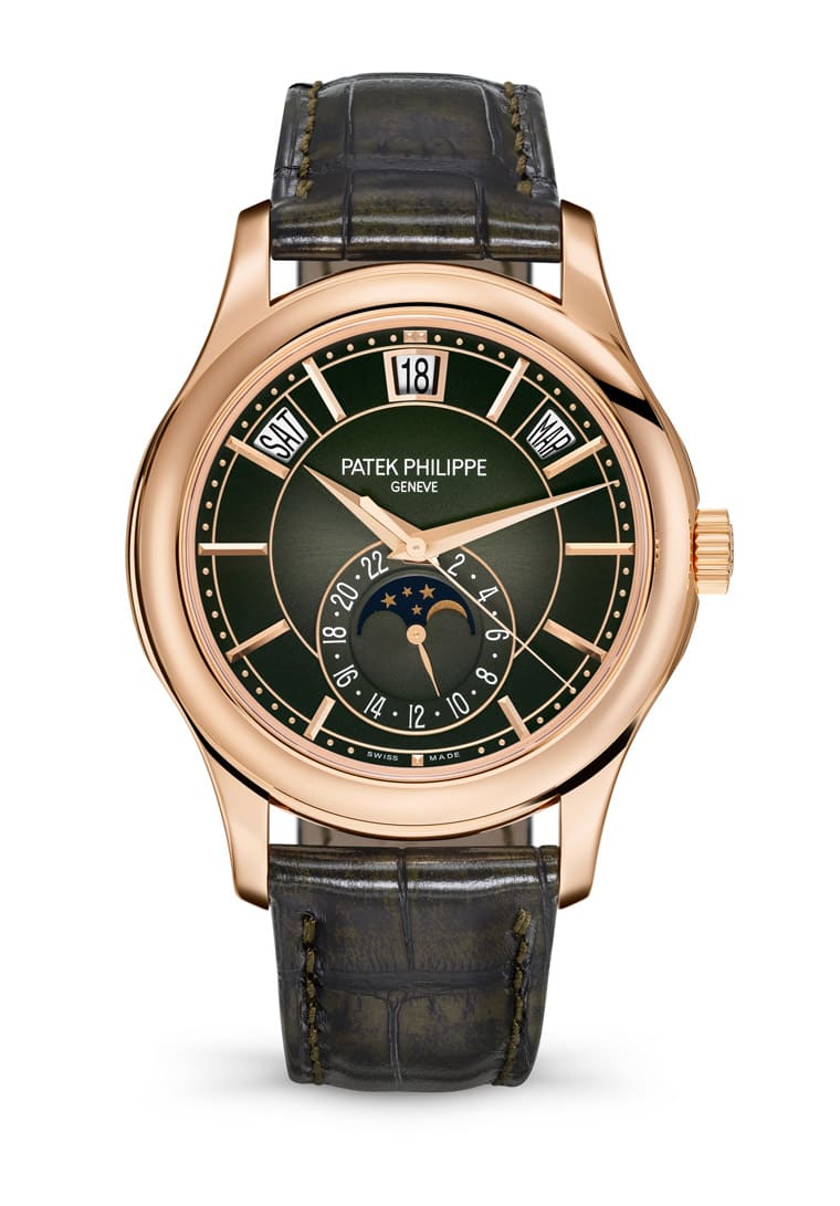 ▲继先前黑面的5205R-010后,百达翡丽2022年推出搭配橄欖绿面的玫瑰金新作展现新气象。
