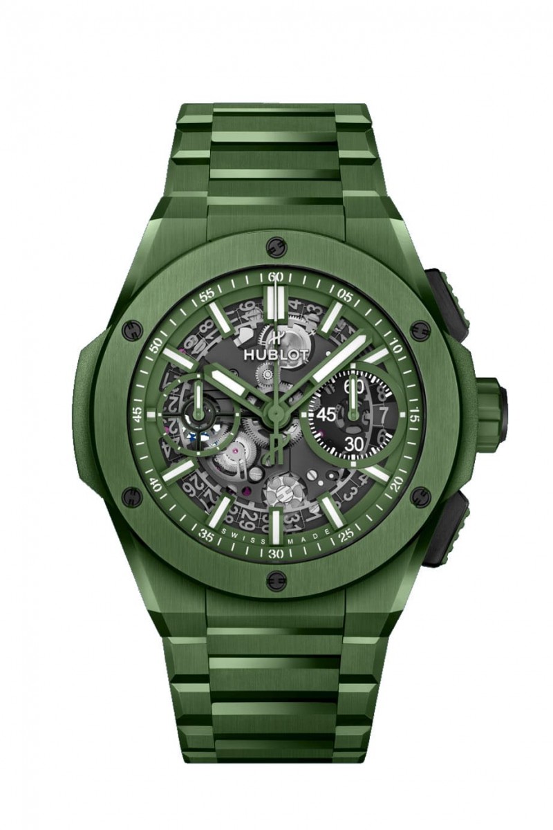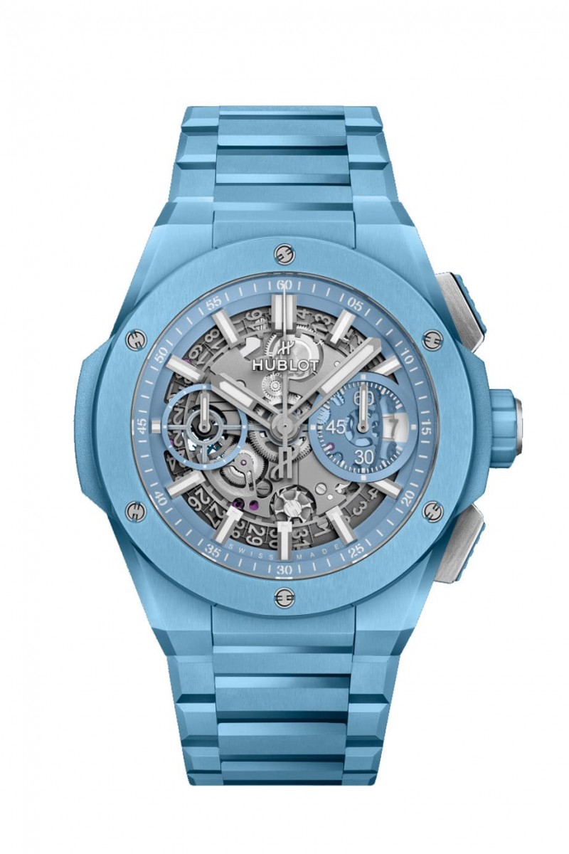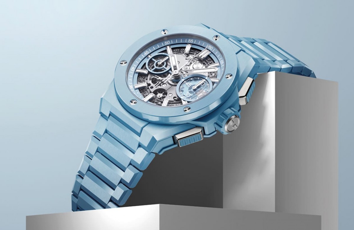 陶瓷材质由于硬度高、加工成型不易,过往表坛较少品牌会选用此种材质制作链带,然而宇舶就是有一种勇于挑战的性格,近年品牌以创作彩色陶瓷和彩色蓝宝石表壳闻名,而且不仅是表壳零件,就连Big Bang Unico Integral计时码表这种搭配链带的作品,宇舶也有办法创作出彩色陶瓷链节,造就手表变化出繽纷的彩度。2022年宇舶继续开发更多顏色的Big Bang Unico Integral计时码表彩色陶瓷款式,而且品牌这次还结合特定设计主题——热带国家或地区景致,呈现出4款彩色陶瓷新作,例如天蓝色诠释南太平洋望向天空时所抱拥的碧蓝景色、砂砾米色让人想起加勒比海邻近沙滩、靛蓝是从摩洛哥着名景点马若雷勒花园(Majorelle Garden)中的蓝色建筑取材,丛林绿色又是源自亚马逊雨林,不仅视觉效果迷人,透过不同主题灵感,也替手表挹注耐人寻味的逸趣。