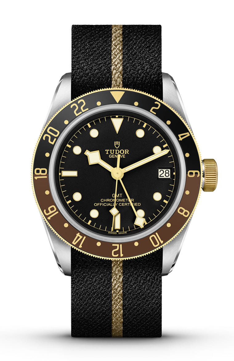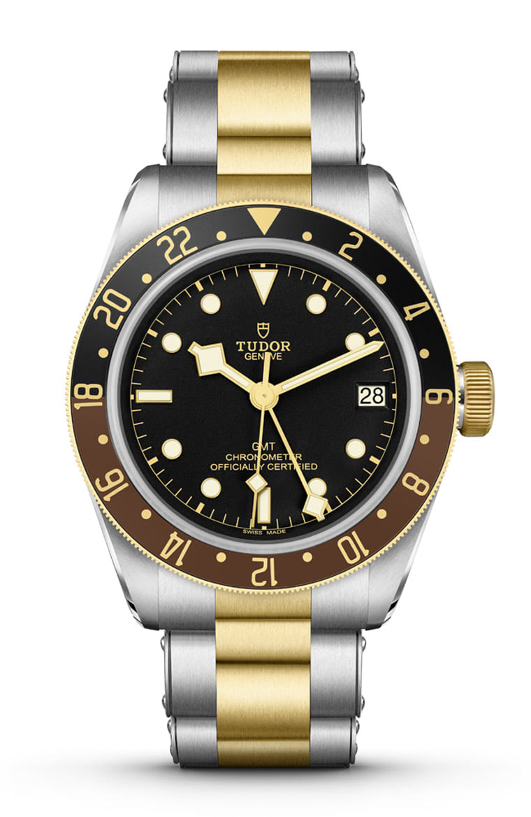 ▲帝舵继2018年后再推新款Black Bay GMT,主要变化在于表壳材质从单纯不锈钢,改为“S&G”这种不锈钢与黄金的半金组合。