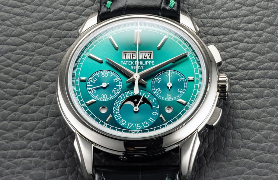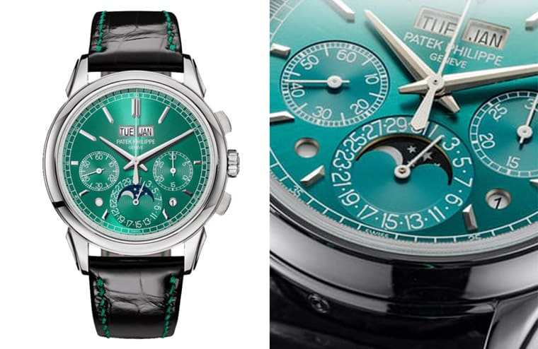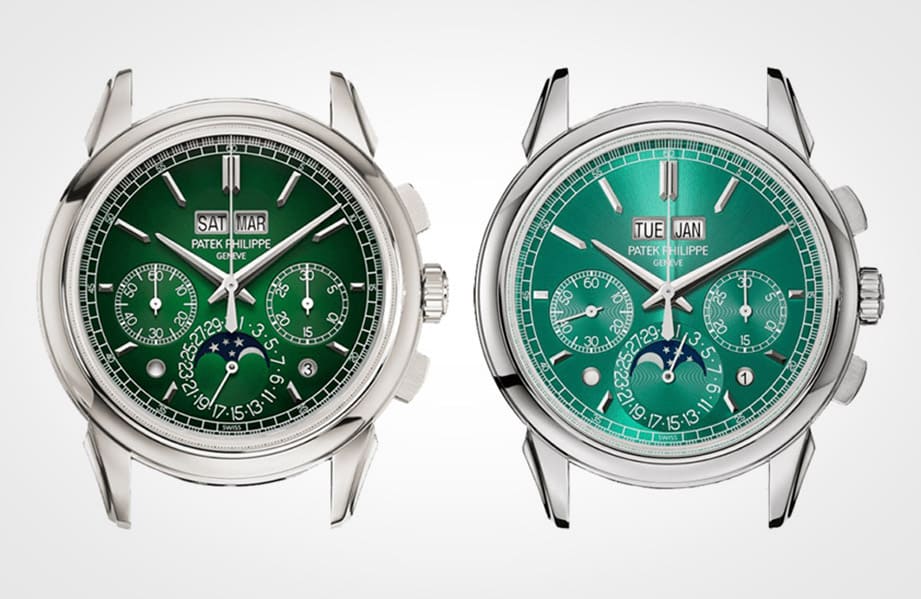 2022年PATEK PHILIPPE百达翡丽旗下Grand Complications系列推出了万年历计时码表5270的新改款——5270P-014,这只铂金新款採用外观很抢眼的渐层绿色,取代原本5270P-001的鮭鱼面,看起来耳目一新。不过最近品牌又释出了另一款5270,手表外型看起来和5270P-014有几分像,因为它也是绿色面盘搭黑色鱷鱼皮表带配绿色缝线,只不过比较晚出的5270的绿色看起来顏色比较浅,到底为什麼PP要在短时间内连发两款看起来差不多的5270呢?