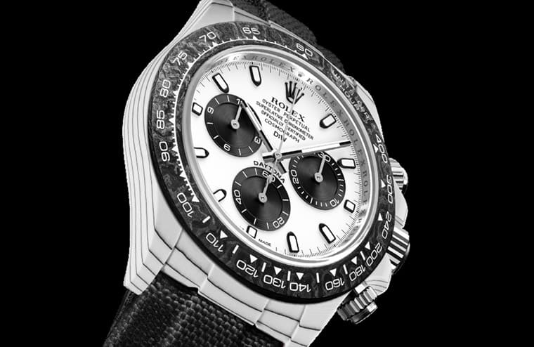 ▲DiW又再改装劳力士Daytona了,这次品牌使用另一种科技材质,以有别于碳纤维黑色调的白色风格搭配黄金零件,散发耀眼光芒。Source:Designa Individual