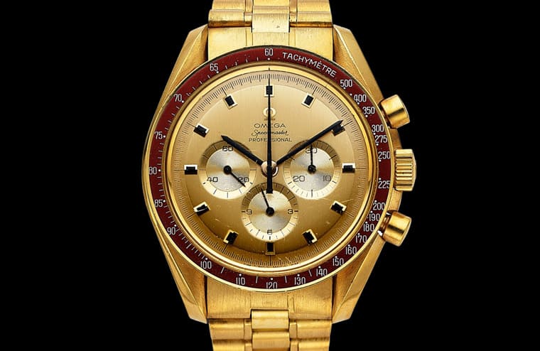 当阿波罗11号任务圆满达成后,欧米茄曾在1969年当下特别制作一款型号BA145.022的超霸手表,它以系列首见的18K黄金材质打造,并配备罕见的勃艮地酒红色表圈,以及底盖鐫刻文字:「纪念人类在未来、过去与现在征服太空。」当时这款表欧米茄只生产1014只,除了赠送给时任美国正副总统的尼克森与阿格纽(不过两只表都被婉拒而存放在品牌博物馆中),当然也送给了阿姆斯壮、艾德林和柯林斯等伟大太空人以表彰他们的成就(其中编号3~28以及1001~1008等30多只都是欧米茄送给太空人留作纪念的表,柯林斯手上那只的编号是19号)。