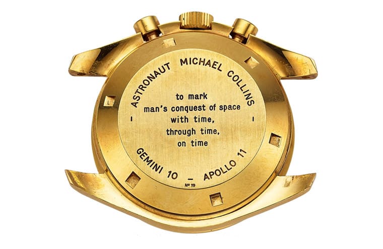 ▲表背特别刻有Michael Collin之名与限量编号,并加上「纪念人类在未来、过去与现在征服太空」的字样。Source:Heritage Auctions