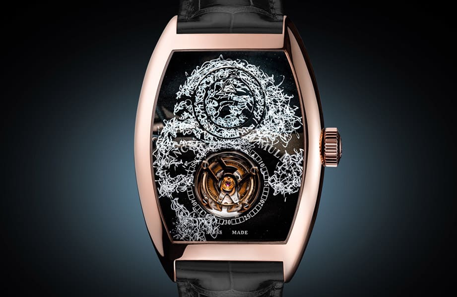 FRANCK MULLER新作Cintrée Curvex™ Double Mystery找上国际知名艺术家Hom Nguyen合作,在陀飞轮手表放上艺术家创造的特别图腾,替高工艺手表增添额外的艺术气息。