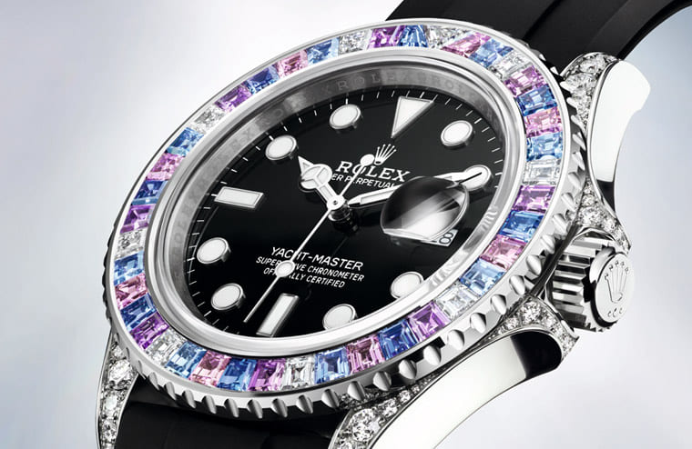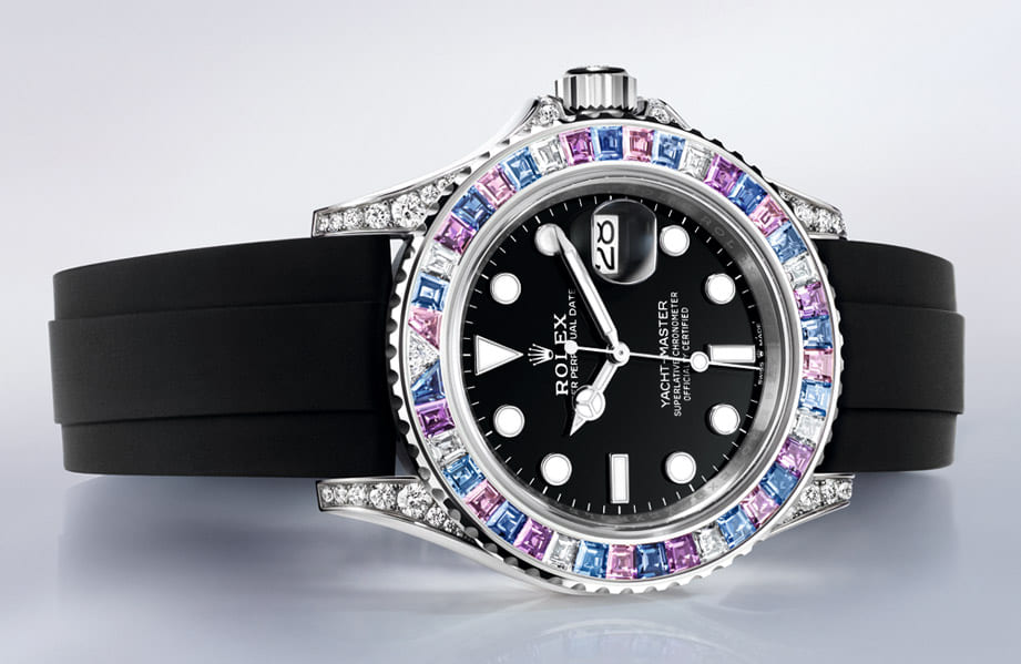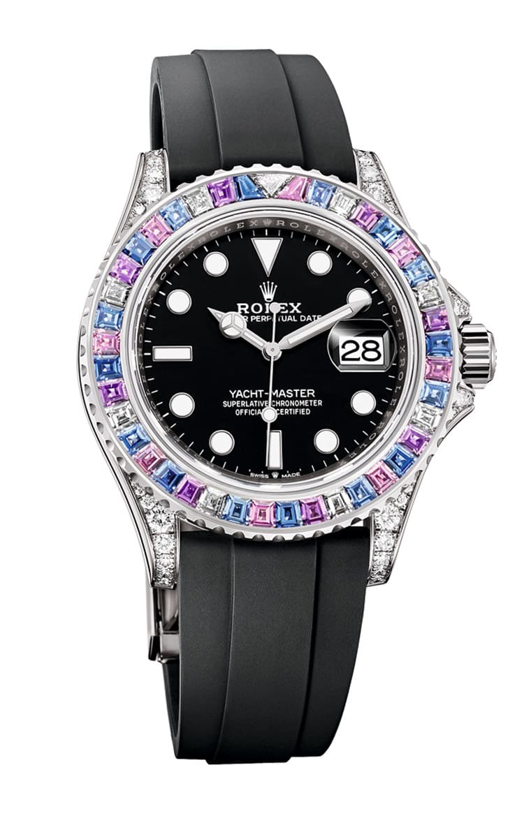 ▲继玫瑰金糖果圈后,劳力士2022年再推出表圈镶有宝石的Yacht-Master 40新作126679SABR。