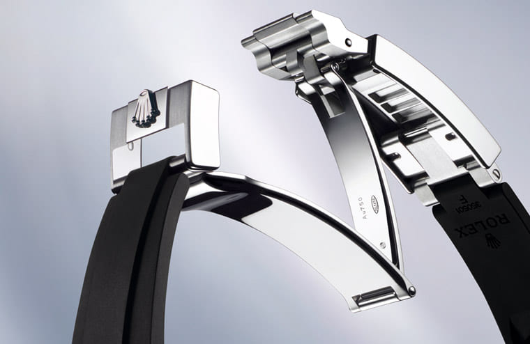▲Oysterflex橡胶表带搭配劳力士设计并获得专利的白金摺叠蚝式保险扣,能有效防止带扣意外开启,且搭配Glidelock延展装置,最多能延展15mm。