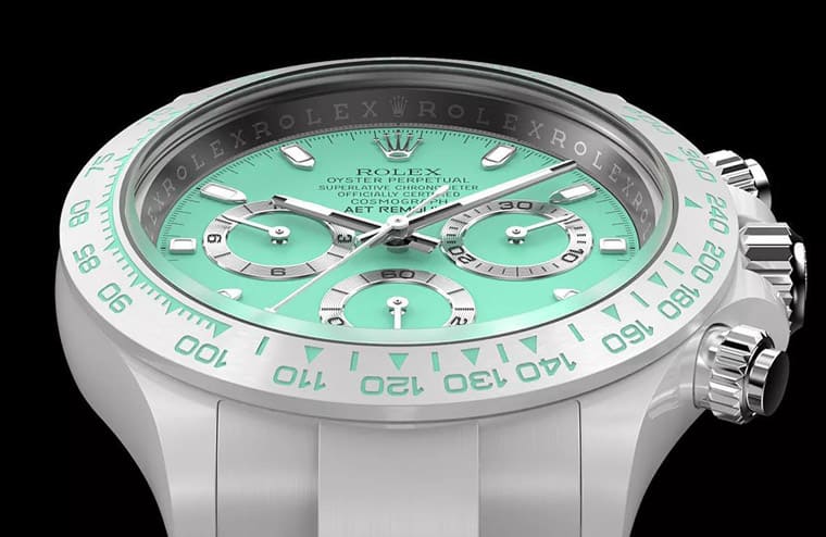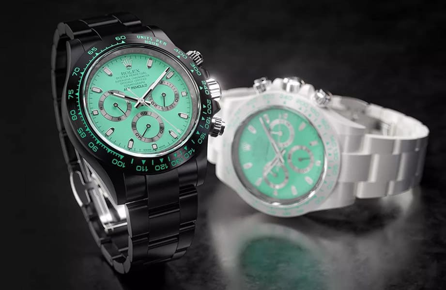 ▲AET REMOULD以夏日为主题,从西班牙北岸比斯开湾水域获得灵感,打造新款劳力士Daytona陶瓷表。Source:AET REMOULD