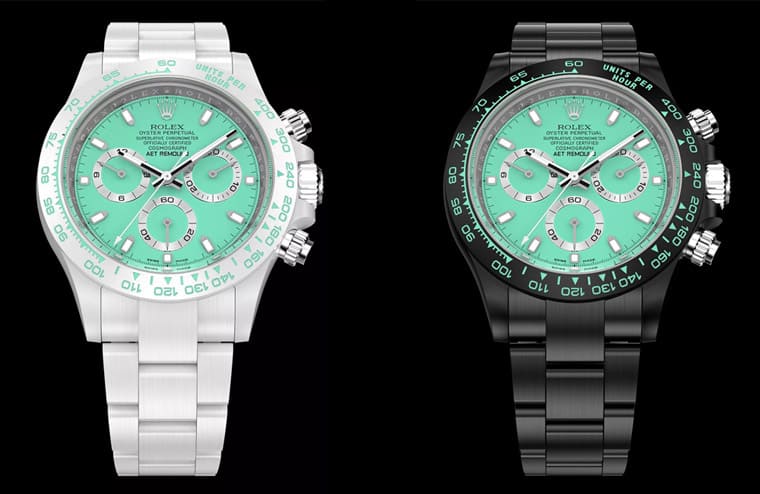 通常AET REMOULD的改装表数量都很有限,这次的Daytona ”Biscay Green”陶瓷表也不例外,两种顏色陶瓷版本各限量18只,要价59,600欧元(折合台币约186万),依旧是相对高档的价格水准,不过看在手表的高顏值与稀有性,许多收藏家看到这款表后想必早已磨刀霍霍准备好要抢表了。