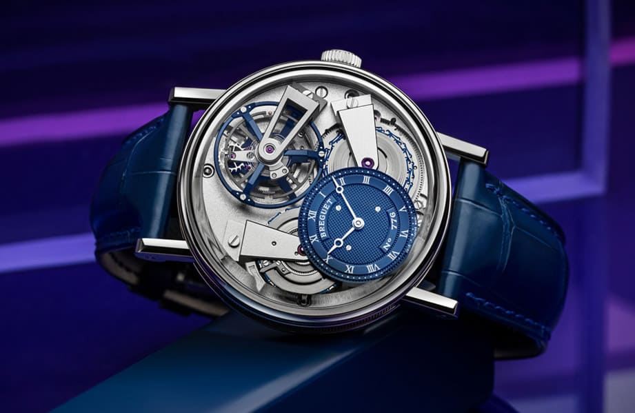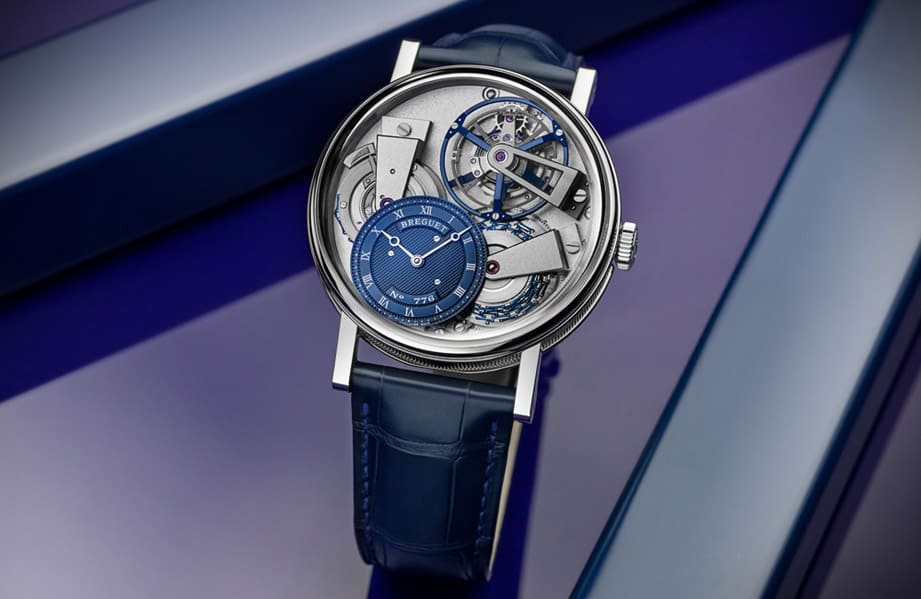 ▲宝璣Tradition 7047再出现铂金款式,不过这回手表换上蓝色细节呈现与前作有别的新气象。