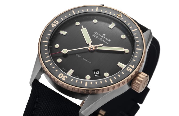 ▲宝珀为了庆祝高登钟表创立50周年,特别推出一款五十噚深潜器手表。