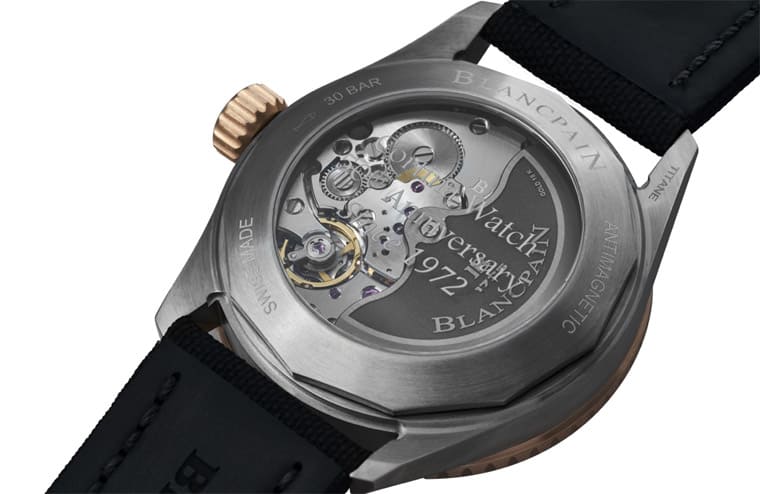 BLANCPAIN宝珀最近推出一款新作Fifty Fathoms Bathyscaphe五十噚深潜器手表,它除了採用系列罕见的异材质双色表壳,更仅限量50只,从手表透明底盖上可以看出它的特殊创作渊源,原来宝珀是为了要庆祝经销商合作店家高登钟表Cortina Watch创立50周年,因此专程发表一款仅在高登钟表独卖的限量款是以资纪念。