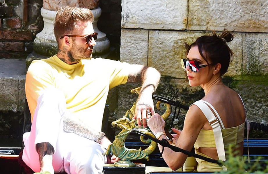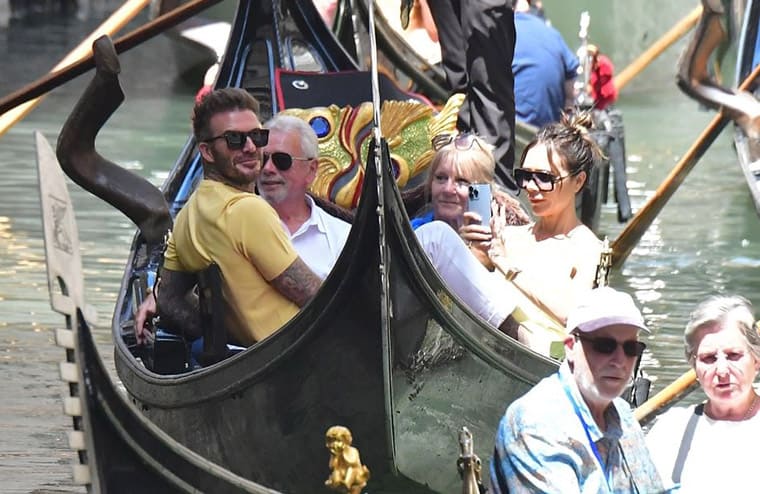 ▲贝克汉和老婆维多莉亚与岳父岳母共同前往水都威尼斯渡假,作为庆祝贝克汉夫妻结婚23周年的庆祝活动之一。Source:dailymail