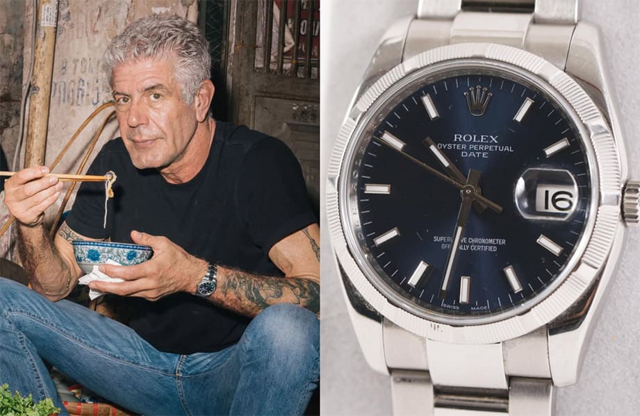 在波登过世后,他所拥有的手表收藏多数被他的家人捐给拍卖会,并将拍卖所得用于慈善事业,其中也有一部分款项捐给波登的母校——位于纽约的美国烹飪学院。在这些被拍卖的手表中,劳力士手表的数量比例满高的,你可能对波登戴劳力士手表的印象不深,这是因为他不太去追那些热门表,反而偏好一些低调的入门款,展现出品牌工艺基本面的扎实作品。