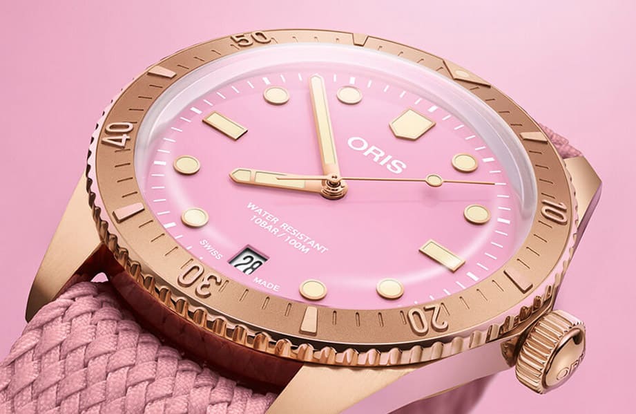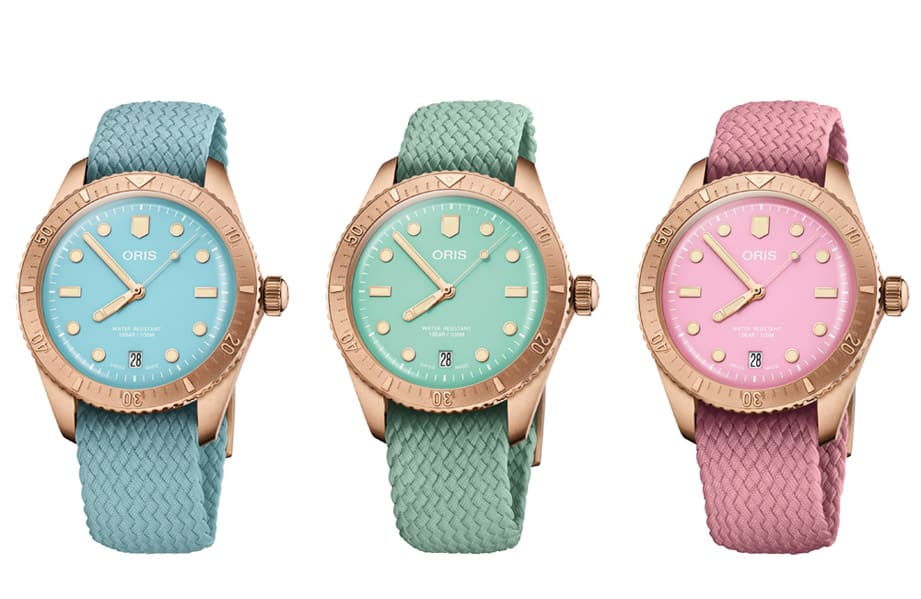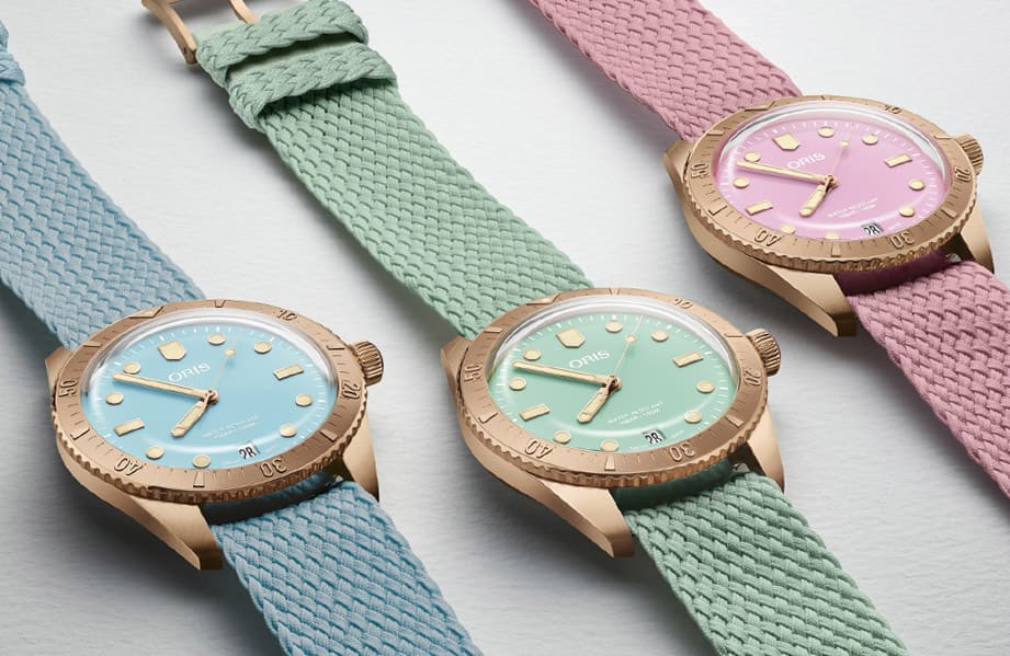 ORIS在疫情时代选择透过青铜材质这种话题表壳重新诠释品牌人气潜水表Divers Sixty-Five,同时在手表面盘放上天青蓝、湖水绿以及石英粉等棉花糖系粉嫩色彩的创意点子,更是让人可以暂时忘记疫情带来的恐惧与不安,戴在手上积极迎向后疫情时代的生活。