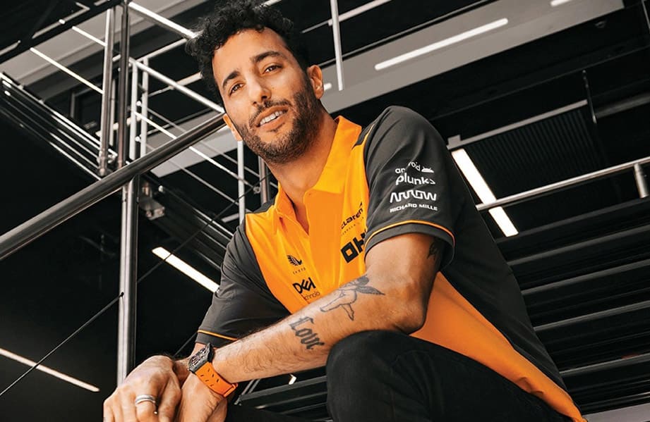 Daniel Ricciardo目前效力的McLaren车队和RICHARD MILLE有合作关系,因此身为车队重金礼聘过来的明星,Ricciardo先前也曾佩戴要价超过120万美金的RM 50-03 Tourbillon Split-Seconds Chronograph拍摄形象照。这款表採用TPT®碳纤维表壳,标榜重量轻到令人傻眼,整只表的重量仅40公克,佩戴在手上几乎没什麼负担感,且它的强度又高于钢材超多,就算在赛车时佩戴也不会妨碍车手发挥。