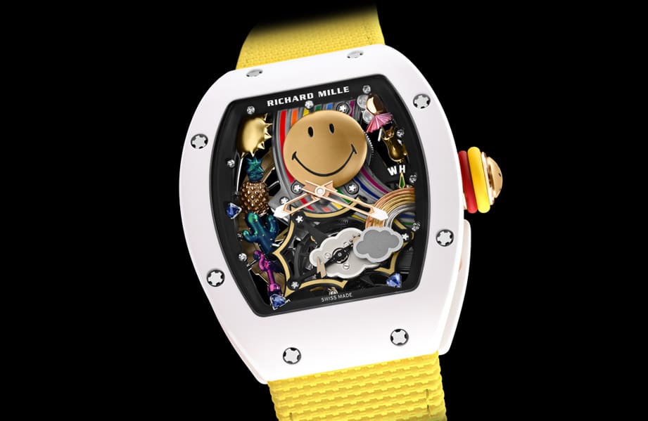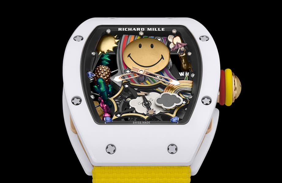 ▲全球知名的黄色笑脸图案搬上RICHARD MILLE的高级复杂手表中。