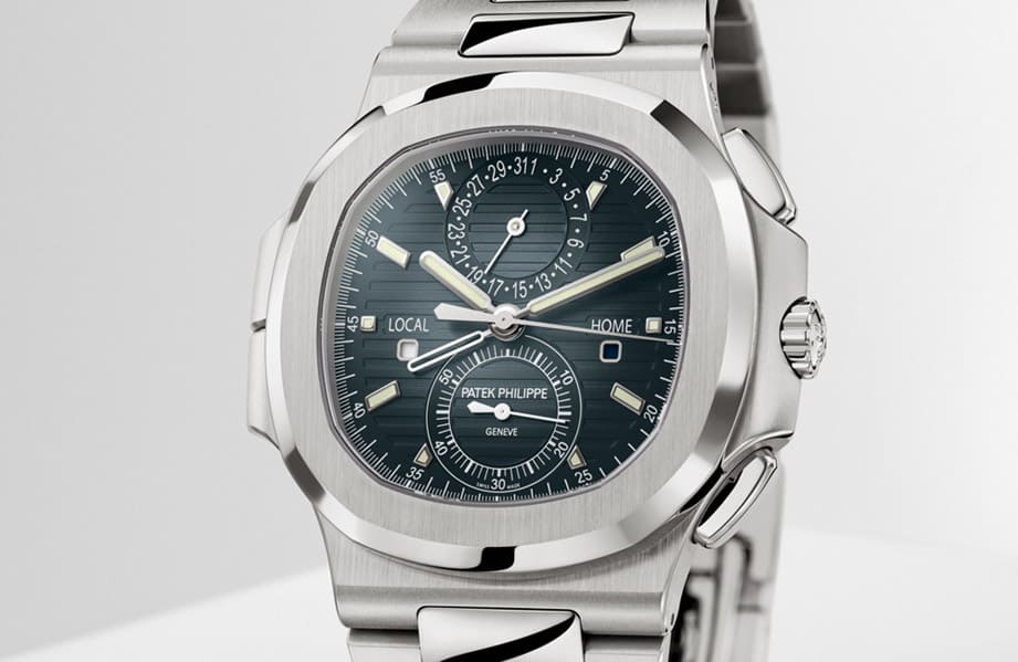 不锈钢表壳的Nautilus两地时间计时码重出江湖,这次百达翡丽替手表配置蓝色放射状面盘,面盘周围呈现精致的黑色渐变效果。至于它所搭载的机芯仍是CH 28-520 C FUS,这枚令收藏家心动的优质机芯匯聚三重复杂功能于一身,包括飞返计时、两地时间以及指针式日期(位于面盘12点方向)等,实用性与赏玩性都是一流。