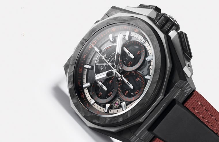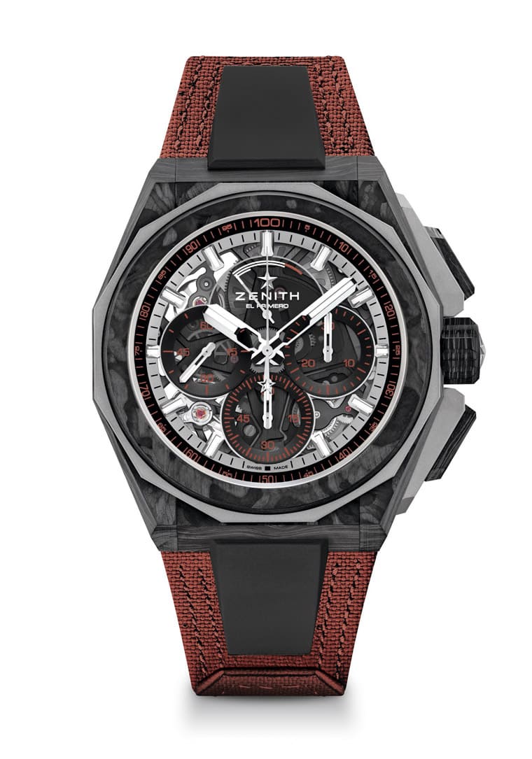碳纤维、钛金属材质/El Primero 9004自动上链机芯/时、分、小秒显示/计时码表功能/蓝宝石水晶镜面、透明底盖/防水200米/表径45mm/限量20只/参考价:NT$ 864,400