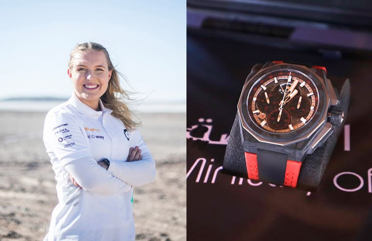 继Extreme E电动车越野锦标赛第二季的前两场比赛后(举办地点依序是沙乌地阿拉伯NEOM和义大利萨丁尼亚岛),赛事移师至阿塔卡马沙漠,当地是全球最重要的铜矿来源之一,并採用创新及可永续发展的营运方式。真力时从中获得启发,採用碳纤维制作表壳、表冠等零件,至于按把保护装置和十二边形表圈则由微喷砂钛金属制成,形成异材质组成的双色调风格。