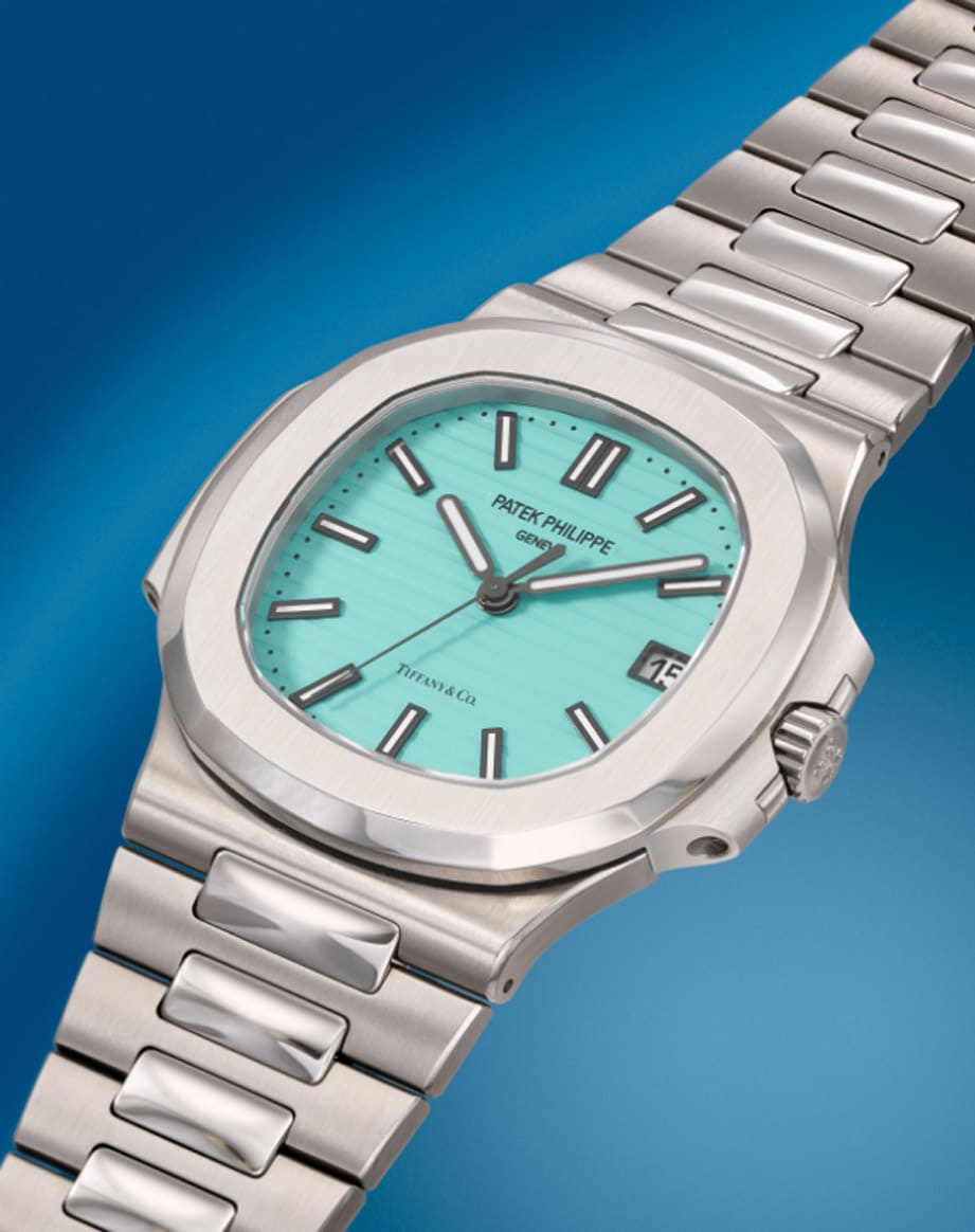 此次佳士得日内瓦「珍罕名表」拍卖会共有129件拍品,成交总额也冲上CHF 23,670,930的惊天数字,其中拍卖金额名列前茅的5711/1A-018相当受瞩目,它之所以受到收藏家青睞并不仅是面盘顏色很特别而已,背后还蕴含两大品牌合作的特殊渊源,甚至也象徵了金鹰5711这个世代的结束,百达翡丽在2021年预告5711型号将停产后,同年分别发表绿面的5711/1A-014和TIFFANY蓝面的5711/1A-018等两款作品。