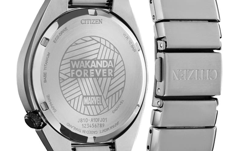 表背底盖鐫刻黑豹电影系列中最经典的口号:“Wakanda Forever”,同时文字背后也有一些交错的几何线条装饰,这款表採用CITIZEN的光动能技术,由自然光和灯光随时替机芯补充动能,一旦充满电充满电便至少能运行六个月以上。