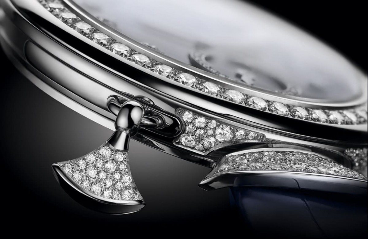 18K白金材质/BVL362手动上链机芯/时、分、小秒显示/三问功能/蛋白石面盘/表款镶钻365颗,约重4 克拉/蓝宝石水晶镜面/表径37mm