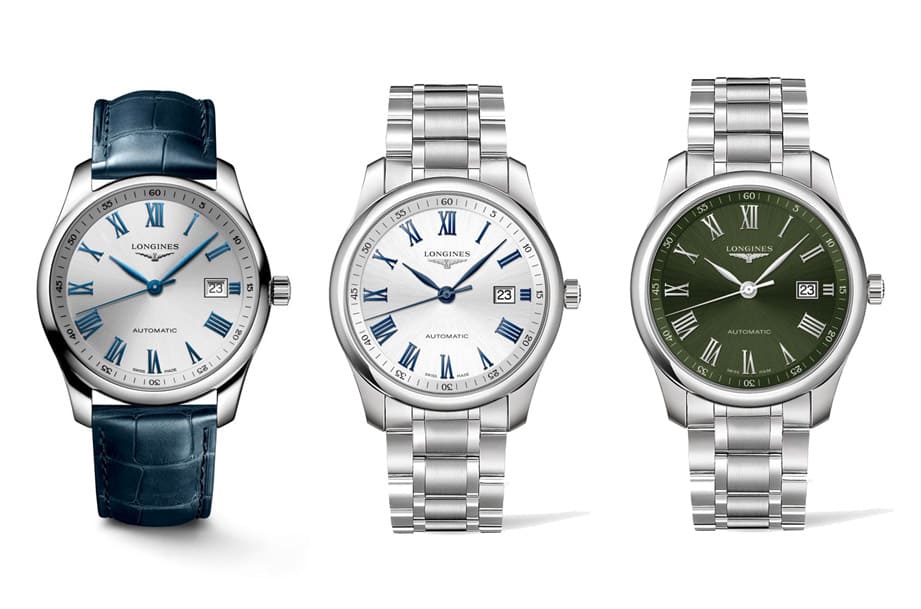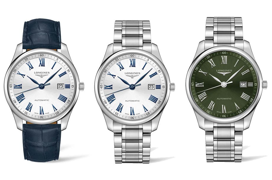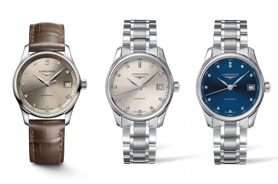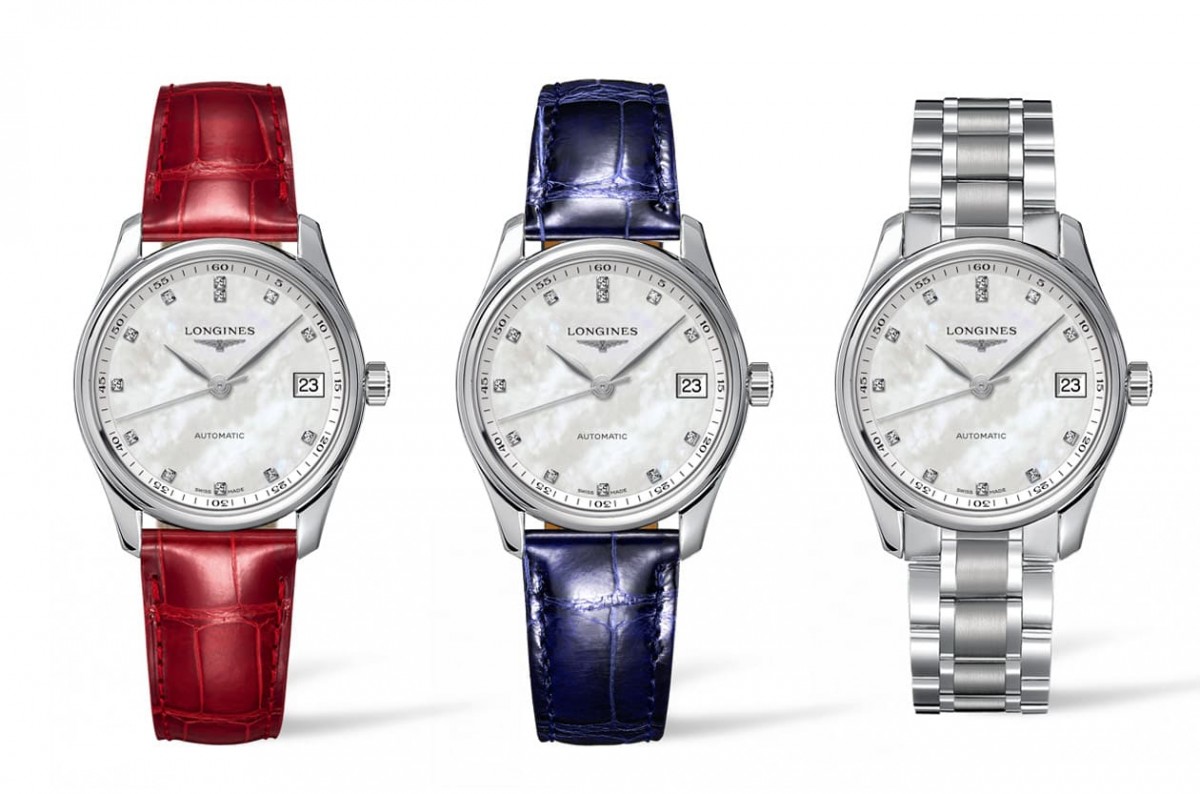 ▲34mm的巨擘系列女表拥有基本实用的三针加日期功能,浪琴表透过面盘配色与表带类型的变化赋予腕表万种风情。