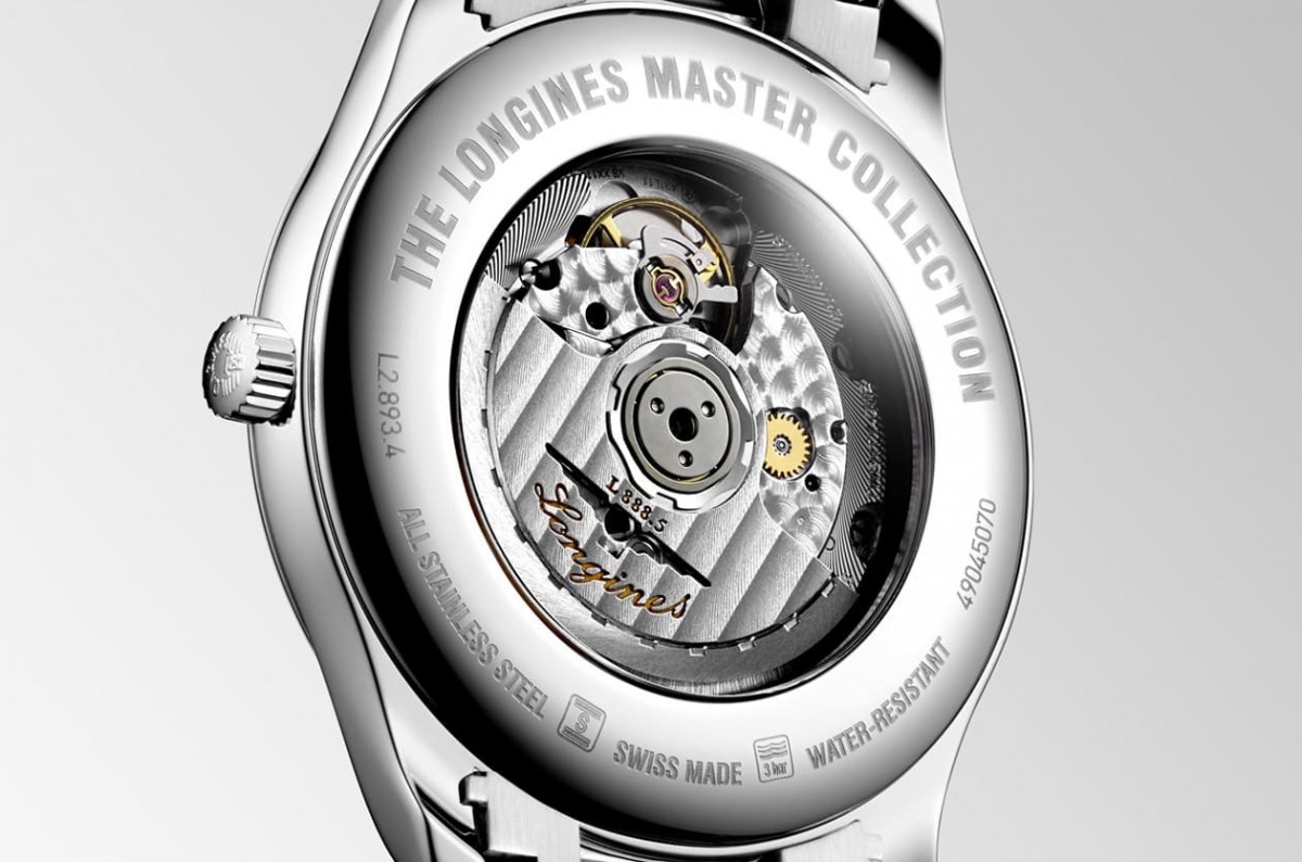 与浪琴表其他系列有所不同,巨擘系列从诞生之初便强调全系列皆搭载自动上链机芯,延续品牌20世纪初屡屡创作高精准计时码表而声名大噪的精良血统,透过表背透明底盖即可将品牌讲究的加工修饰与精密机芯结构尽收眼底,包括自动盘、底板上的日内瓦波纹、鱼鳞纹以及零件边缘的倒角等,都与浪琴表致力追求腕表精准度的制表坚持有关。