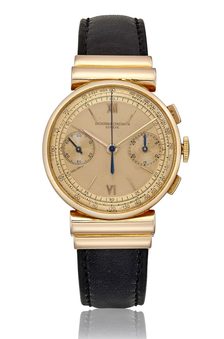 这款于1940年推出的表款只有不到20只是以玫瑰金制作的,另外黄金制作的也不到10只。手表具备奇特又富有辨识度的的双圆柱外罩式表耳,同时其搭载的导柱轮机芯295则拥有30分钟计时盘以及测速刻度。