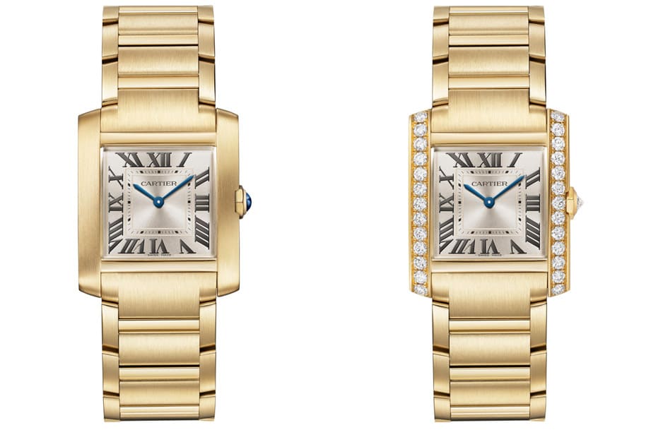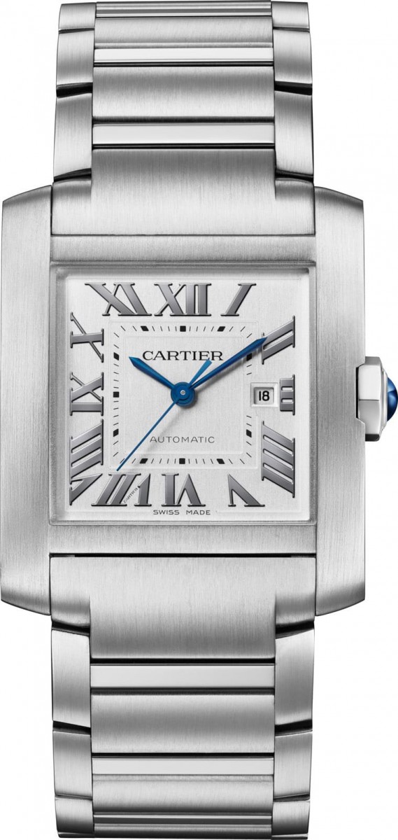 2023年回归的Tank Française经过卡地亚重新设计,致力突显腕表一体式的表壳与链带设计,同时也在保有系列既有的美学风格之餘,融入人体工学思维,使得佩戴腕表时更为舒适服贴。全新Tank Française将一口气出齐小型款、中型款与大型款,前两者均搭载石英机芯,而大型款则改採自动上链机芯,品牌分别以不锈钢、黄金或镶钻等材质制作腕表大气刚毅的表壳,并在表冠点缀蓝宝石或钻石达到画龙点睛的效果。