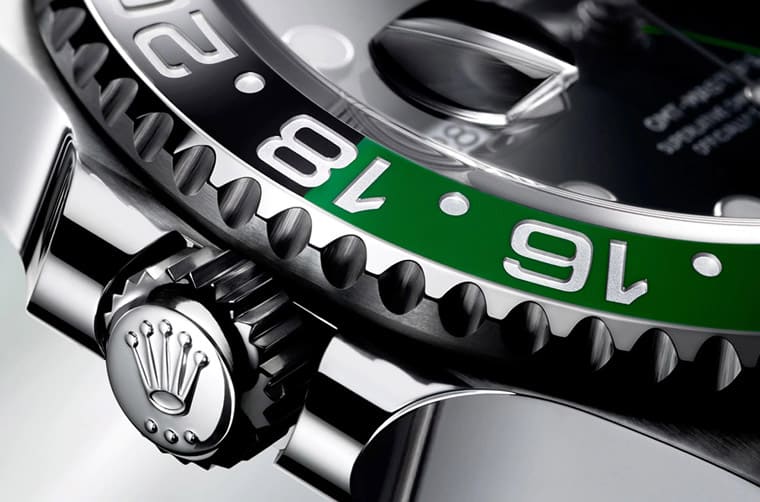 ▲126720VTNR吸引人的亮点不外乎绿黑双色表圈以及表冠改设在9点方向的独特性。
