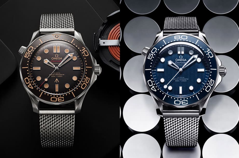 欧米茄从1995年开始赞助007庞德系列电影,历年来海马潜水300米多次出现在两任庞德皮尔斯布洛斯南和丹尼尔克雷格手上,因此近年欧米茄有时也会发表007特别版的海马潜水300米让表迷和影迷都能从中满足需求。目前讨论度最高的海马潜水300米007特别版要属210.90.42.20.01.001(上图左),这是欧米茄为了《007:生死交战》量身打造的手表,据说电影剧组和丹尼尔克雷格本人都有提供一些设计建议给欧米茄。这只表採用钛金属材质,表圈是比较复古感的铝材质,搭配米兰链带以及米黄色的夜光物料散发出典雅的况味。手表的面盘和表背都刻有一个箭头标志,这是英国政府用来标记国有财产的标志,强烈的电影梗让这款表魅力四射。210.90.42.20.01.001的定价比一般海马潜水300米要高一截(介于29万~33万左右),目前在Chrono24搜寻这款表,价格大概落在台币24~25万,若你锁定的是NATO表带版本价格还会再亲切一些。而欧米茄在2022年底追加的庞德电影上映60周年纪念版210.30.42.20.03.002(上图右)也是系列中一款热门型号,不过这只表价格已经从高峰跌落,在Chrono24上已能找到约22万多低于定价的行情数字。