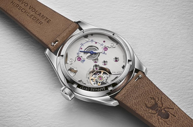 Big Crown Calibre 473採用不锈钢材质制作38mm的表壳,并搭配橄欖棕色的Cervo Volante永续鹿皮表带(因此表带内侧则会印上甲虫图案),Big Crown系列为品牌1930年代开始广受市场注目的主力作品,此次导入Calibre 473后,使得系列在过去好几十年来,也是第一次搭载品牌自制的手动上链机芯,在手表维持着系列传统的设计之餘,其内在其实产生了重大的转变。