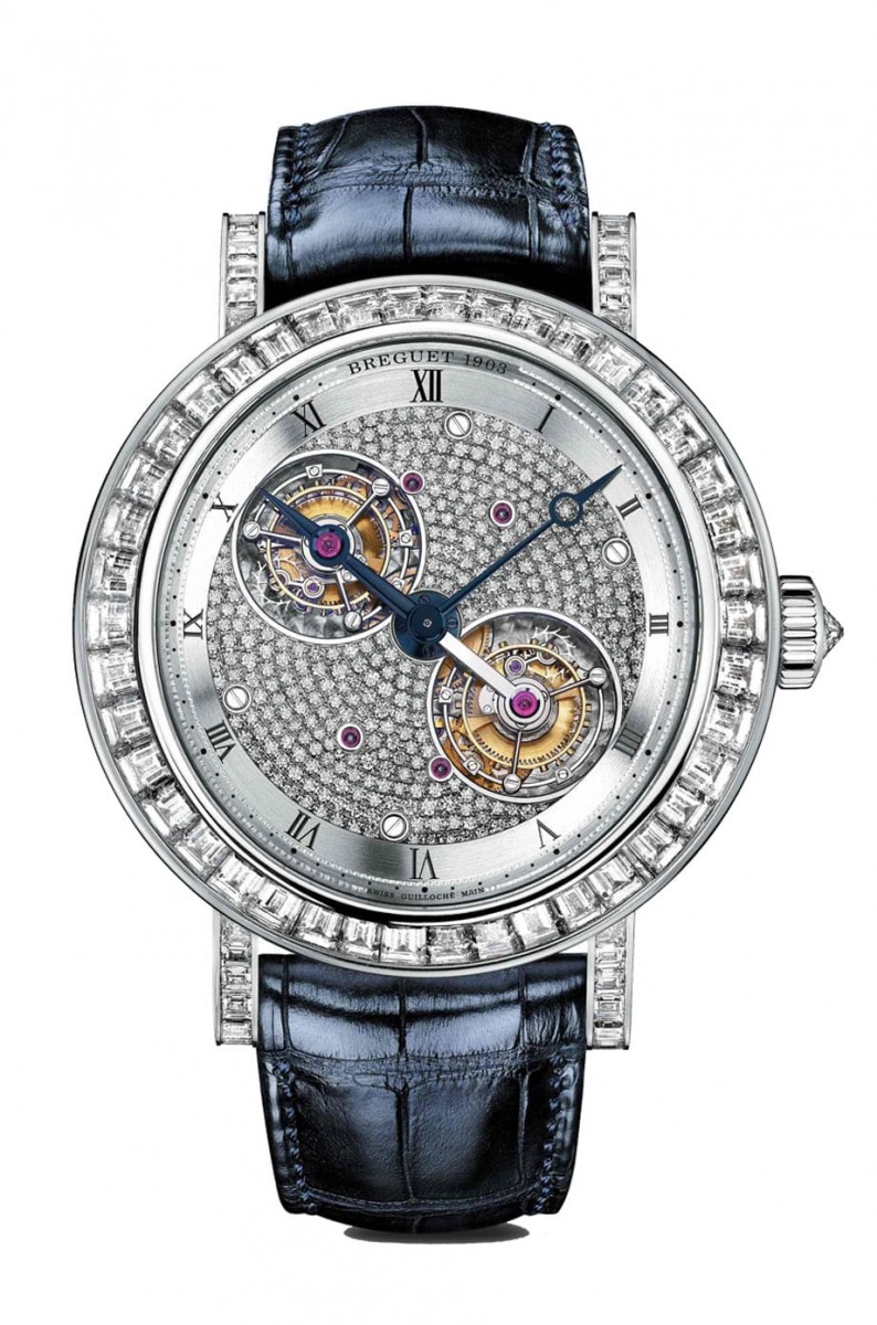 950铂金材质/588手动上链机芯/时、分显示/双陀飞轮装置/表款镶钻417颗/蓝宝石水晶镜面、透明底盖/防水30米/表径50mm