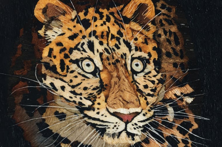 ▲以细木镶嵌拼缀成怀表背面的捷豹图案。