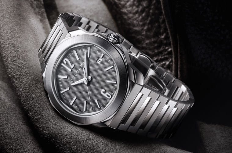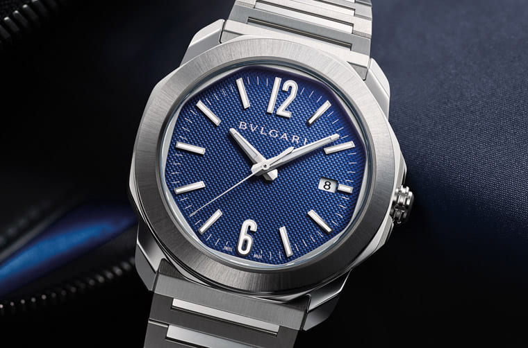 宝格丽2023年微调了Octo Roma最入门的大三针日期表,新款融入了表冠护肩装置,不只增进美感也提升手表的耐用度,而也因为多了表冠设计的关系,手表的防水性能也从50米进步到100米。全新的Octo Roma Automatic自动表面盘採用巴黎钉纹装饰,其立体感能反射出多变的光影效果,而宝格丽这次同步推出三种面盘顏色,包括蓝色、碳黑色和银白色;除了面盘新增纹路之外,宝格丽也着手改良手表的实用性,例如新款的时标与指针全面涂覆Super-LumiNova®夜光涂料、融入表带快拆系统等,这些细节的改造,都让手表能发挥更优异的佩戴机能,甚至也更能随表主心意穿戴出最符合自我个性的风格。
