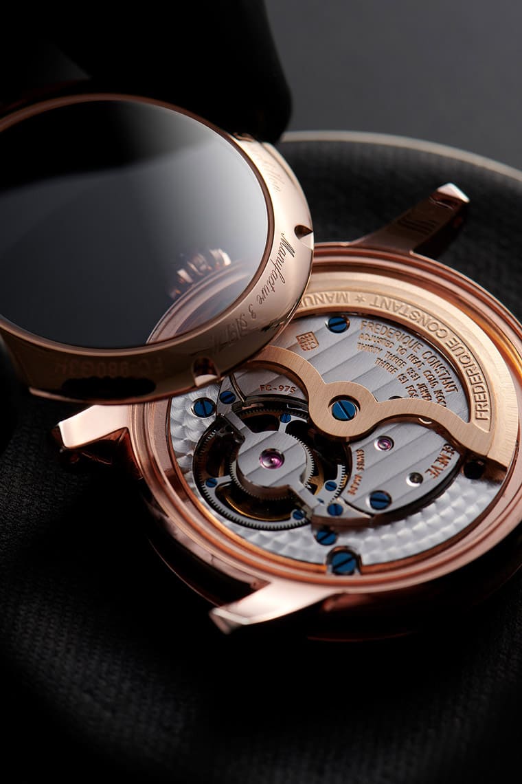 ▲透背设计露出品牌自制的FC-980机芯,其达到陀飞轮复杂等级,机芯零件的作工也遵循高级制表传统。