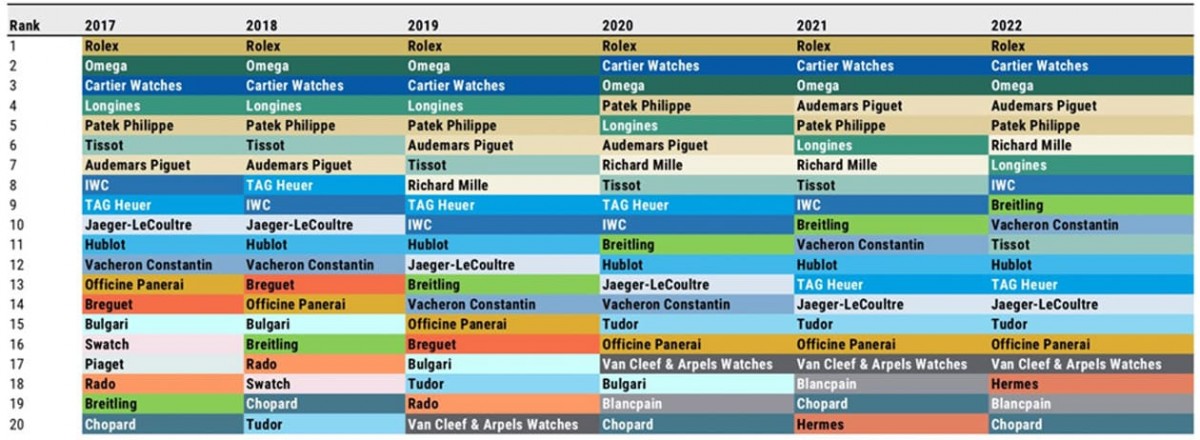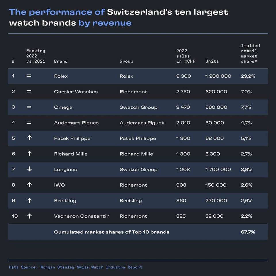 根据「大摩」摩根士丹利(Morgan Stanley)和瑞士LuxeConsult公司提出的瑞士钟表产业年度报告,不仅可以从中瞭解整个瑞士钟表产业2022年的出口表现,就连一些销售表现亮眼的人气品牌也能看出他们在过去一年,甚至是比起前几年的表现如何。