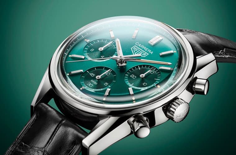 「美国队长」这次戴的表是绿色面盘搭配黑色表带——和他的衣服、裤子简直是绝配,放大看会发现他戴的是2023年超应景的泰格豪雅Carrera绿面限量自动计时码表,因为Carrera系列在今年迈入60周年,这款经典赛车表充满热血竞速感,不过克里斯伊凡戴的并非2023年问世的纪念表,而是泰格豪雅2021年时发表的作品,这款表的绿面设计相当符合近年市场的喜好,加上Box式镜面、复古HEUER标志以及米黄色的夜光物料等,又都带点怀旧精神,因此这款表不像现代运动表那麼豪迈且激情,反而呈现更浓烈的优雅个性,戴在男神级的克里斯伊凡手上相得益彰。