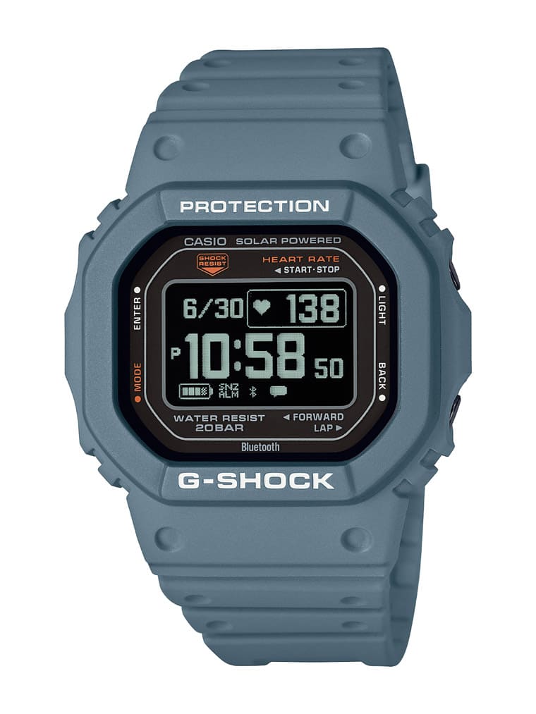 DW-H5600系列秉承G-SQUAD为运动而生的理念,可以藉由手表的按把选择跑步、步行、健身房锻链和间歇训练等4种运动模式,由于手表配置光学感应器与加速度感应器等,因此可以测量心率、血氧浓度、卡路里消耗数据、步数与距离,而且手表也会以Polar Electro Oy演算法为基础,协助使用者透过经科学验证和高度可靠的分析结果,来健康管理与制定训练计画。