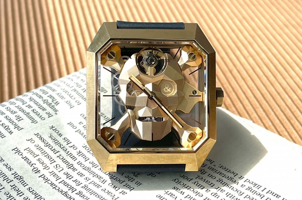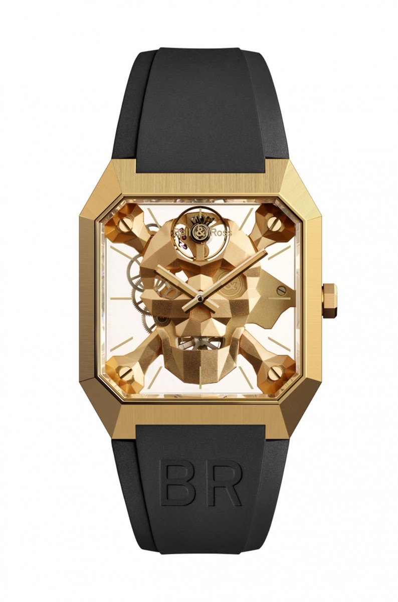 ▲採用青铜材质的BR 01 Cyber Skull Bronze,面盘结合镀金镂空骷髏头图案,展现品牌大胆前卫的制表理念。