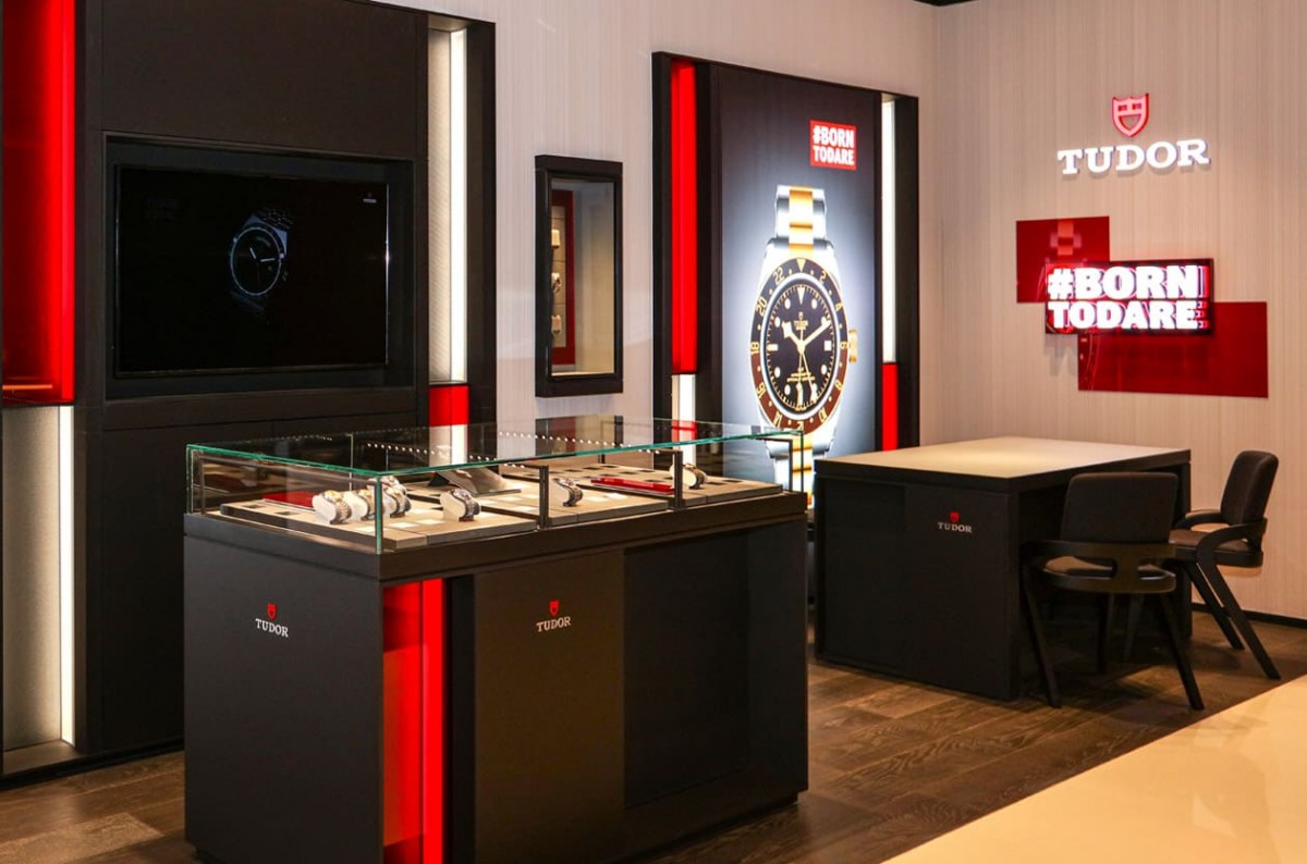 ▲宝岛钟表花莲名店一楼店面以劳力士与帝舵两大品牌为主,柜位设计与品牌最新的国际陈列形象接轨。
