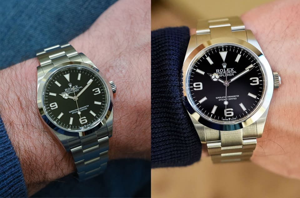 ▲透过外媒提供的实着图,可以大致感受124270和224270两种型号戴在手上的感觉,36mm明显会比较融入在手腕上。Source:Monochrome-watches