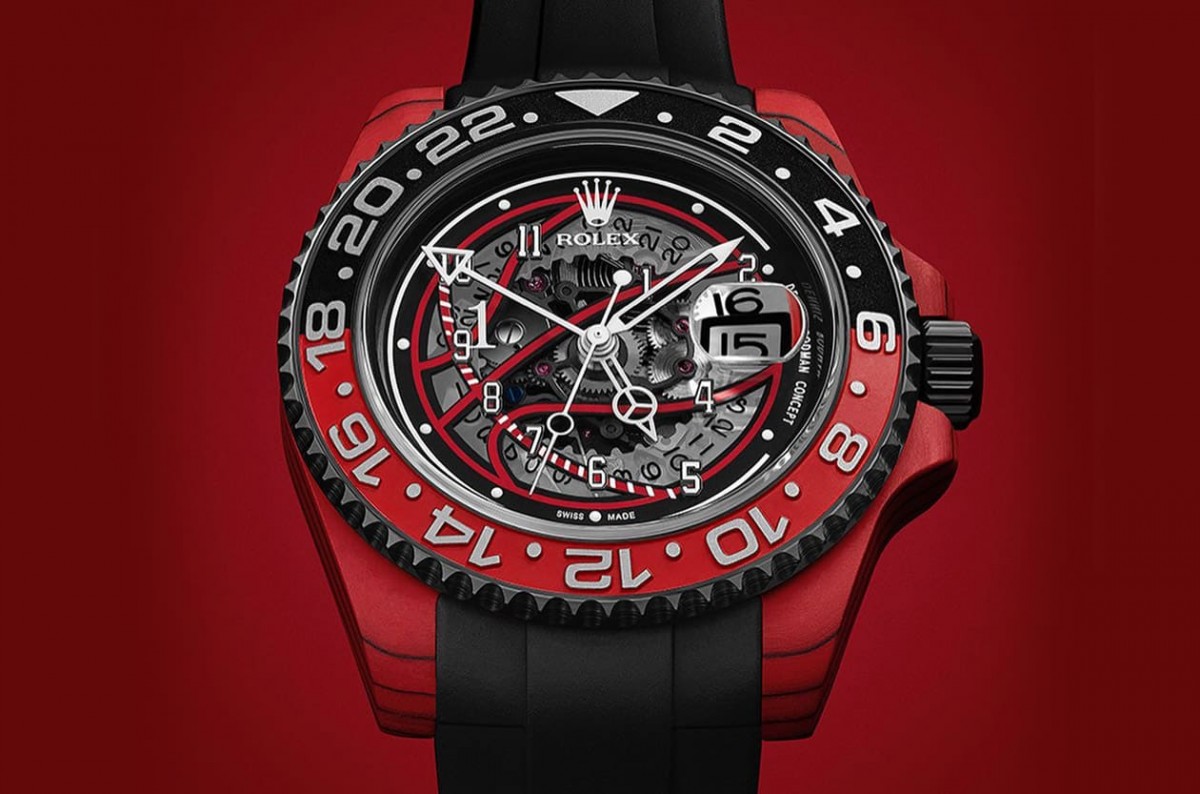 个性独树一帜的「小虫」,对于自己拥有的手表有着满满的想法,他就是不想要戴跟别人一样的表,不过他和劳力士的关系可能还没好到品牌愿意帮它特制手表,因此他直接寻找令自己满意的改装表厂代为动手改造还是比较实际的做法。罗德曼原本的GMT-Master II属于哪个型号、何种设计?SKELETON CONCEPT并没有特别交代,不过倒是有说明手表搭载的是3186机芯,因此可以推估是116710这种已经绝版的型号。在SKELETON CONCEPT的官网或社群平台仅「简单粗暴」地秀出改装后的手表成品;从手表外观看起来,很明显改装表品牌和罗德曼在沟通设计时是以后者在公牛时期的生涯为主,所以整只表散发出浓浓的红/黑色调,这正是公牛队招牌的球队配色。