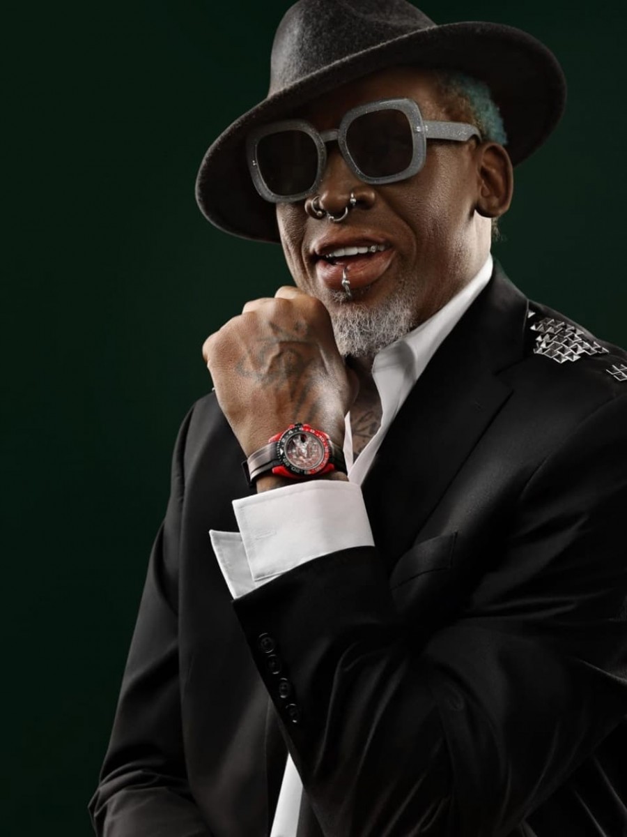 ▲罗德曼戴着属于自己的GMT-Master II,让人想起他当年协助公牛队建立的三连霸王朝。Source:SKELETON CONCEPT