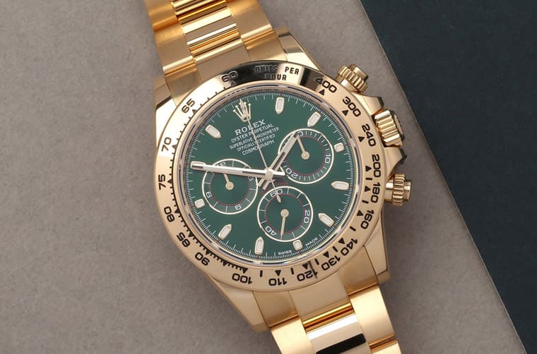 劳力士2023年为了庆祝Daytona系列60周年所以大刀阔斧推出了全新世代的迪通拿计时码表,新款在外装以及内部机芯方面都有或多或少的调整,而且品牌也不是直接将原本的旧款「复制重贴上」,有些款式就在这次的改朝换代中消失在劳力士官网目录上,代表手表走向停产命运。通常我们会觉得被停产的款式应该会是本来比较冷门、不好卖的产品,但是劳力士的逻辑有时并没有如此想当然,例如Daytona系列前几年倍受收藏家欢迎的黄金绿面款116508(绿金迪)就赫然位列在今年的停产名单上,目前新世代黄金材质的迪通拿只剩黑面、白面与金面,反而是高人气的绿金迪先被终止,让还没有入手这款表的人只能望表兴嘆,转而前往二级市场探询入手这款表的机会。