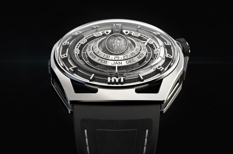 ▲HYT结合碳纤维与钛金属制作Moon Runner的表壳,前卫造型展现品牌招牌风格。