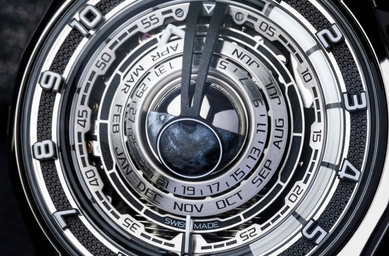 光是基本时间资讯的显示就如此别出心裁,Moon Runner “Ghost”和Moon Runner “Desert”的月相更是充满话题,HYT利用高科技演绎月相这种高级手表的经典复杂功能,它会随着时间不断变换,同时品牌还借助手工微型画捕捉月球的神采,画工细腻到连月球表面的低洼与起伏也都如实刻画到位。