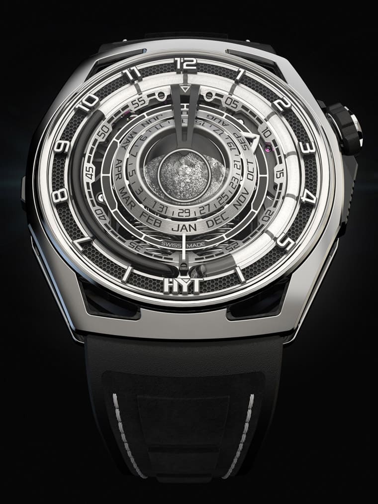 HYT于制作过程中委託一位手工艺大师,在直径11.9毫米的金属半球上用画笔揣摩月球表面的地貌,每绘制一个半球的微型画创作都需要费时一整天——而且创作过程中还是在黑暗中,仅用紫外线灯照射,最终大师亲手绘制的成品相当令人惊艳,彷彿就像我们抬头仰望天空时看到的月球般栩栩如生。